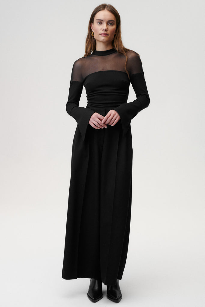 - Black bodysuit made from of viscose blend and stretch mesh.