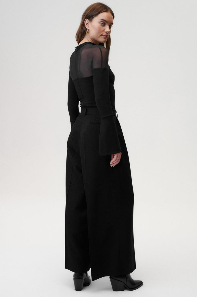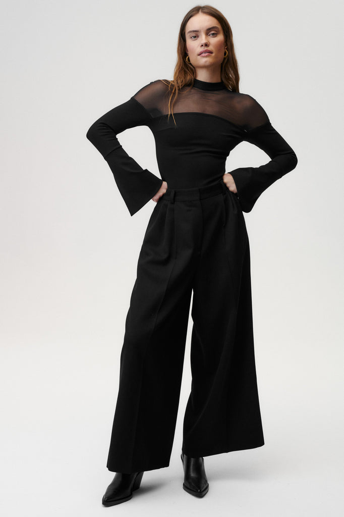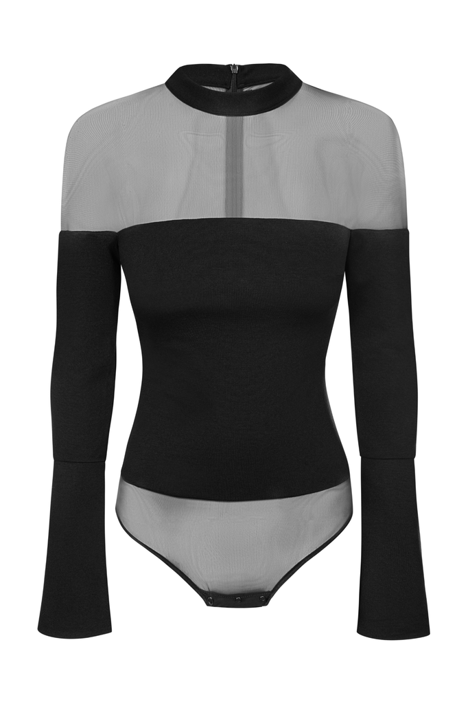 Subtle and sensual. This bodysuit with a beautiful neckline, combining with flared sleeves, will be the perfect choice for any occasion and season. Style it with classic black suit trousers or however else you feel like.