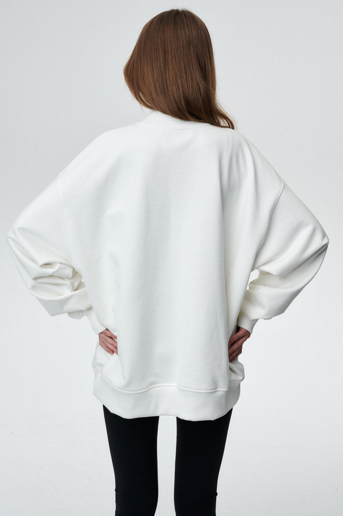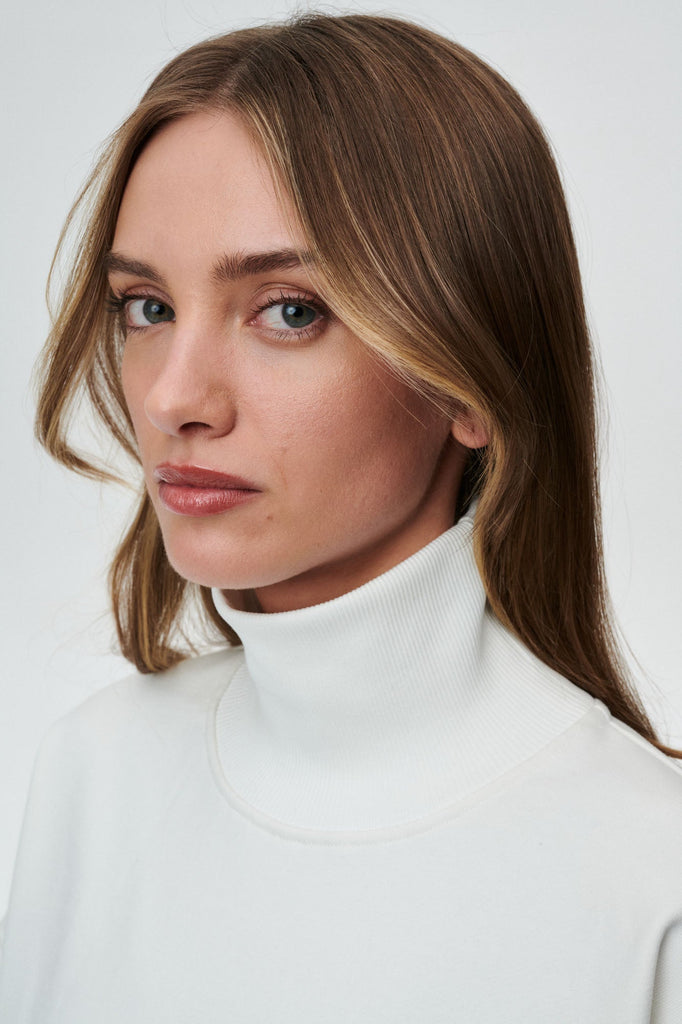 We all love oversize, especially sweatshirts. This loose and ultra-comfortable sweatshirt features an extended fit, a softly layered turtleneck, and lovely wide sleeves. Sink into this lovely cotton sweatshirt and join our Self Love Club!