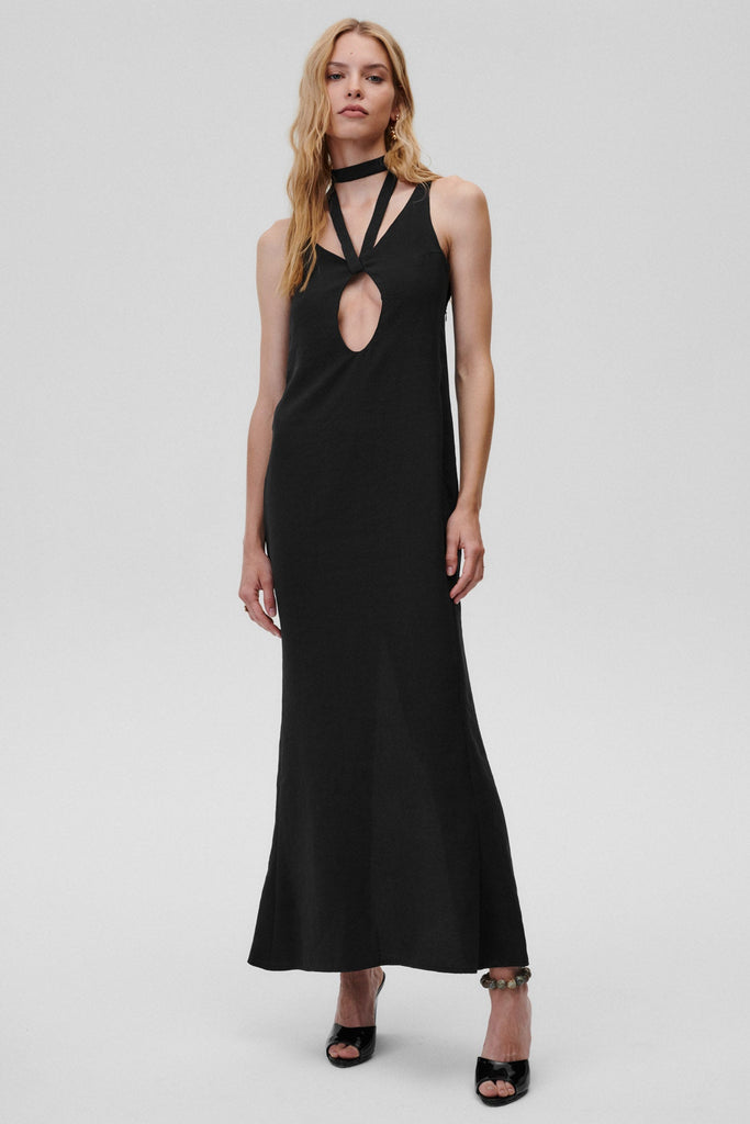 Maxi dress in a supersexy cut. The neck tie adds a flirty touch, while the cut-out at the bust reveals just the right amount, gently exposing the bust and sparking the imagination.