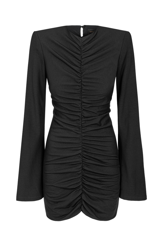 Own the night in the That Girl Dress. With elegant draping in both the front and back, a daring open-back design, and a flattering neckline, this mini dress combines sophistication with sensuality. Whether it’s a night out or a special occasion, this piece ensures you’ll be the center of attention.