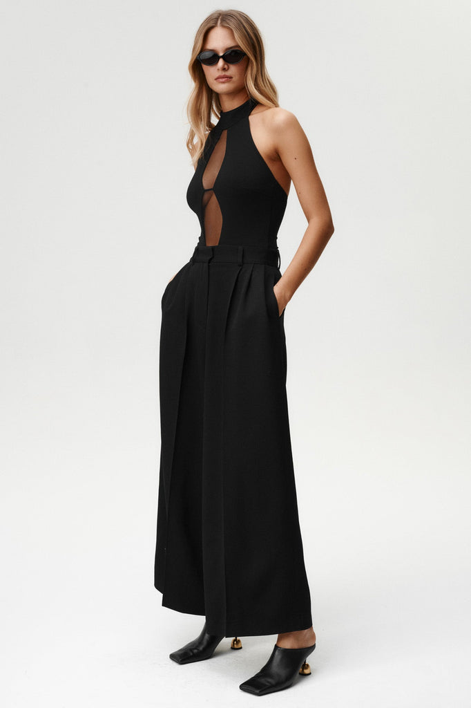 An instant classic with a modern touch, the Jolie Bodysuit features an elegant halterneck cut and almond-shaped mesh cutout at the front. Crafted in a soft, stretch fabric that hugs the body in all the right places, it's ideal for date nights or elevated evenings under a blazer. Pair it with tailored trousers for a sophisticated dinner ensemble, or wear it under a blazer for a chic, contemporary look.