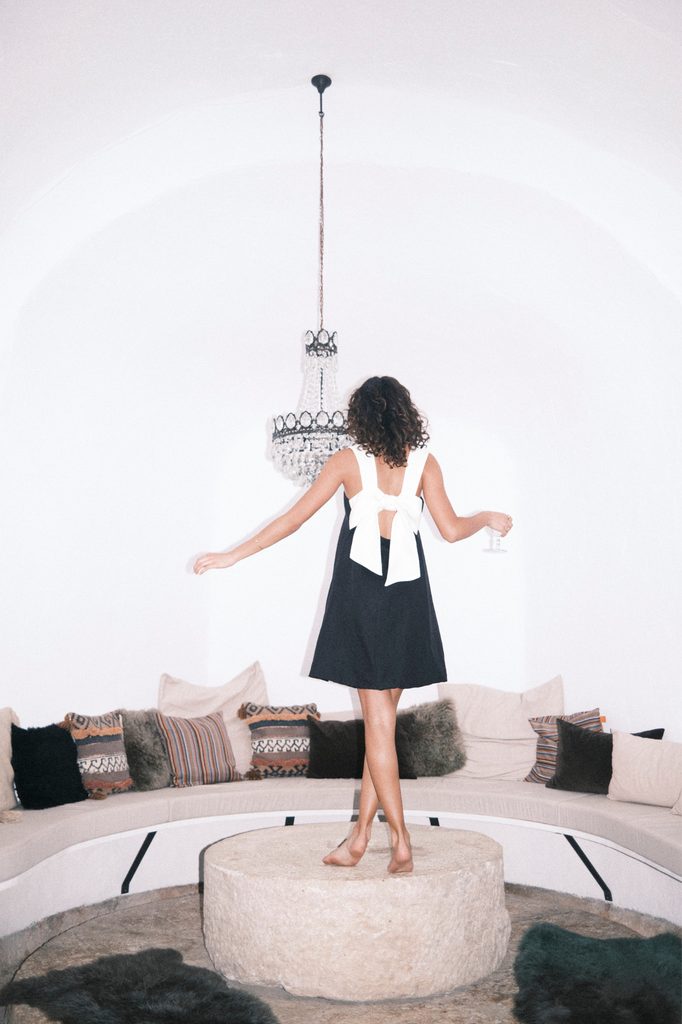 The Daisy Dress is equal parts sweet and striking. With its flirty A-line shape, bold contrast straps, and an oversized bow that ties in the back, it’s the kind of dress that turns heads without even trying. Made from breathable linen and designed for comfort and charm, it’s your go-to for summer days when you want to look cute and stay cool.