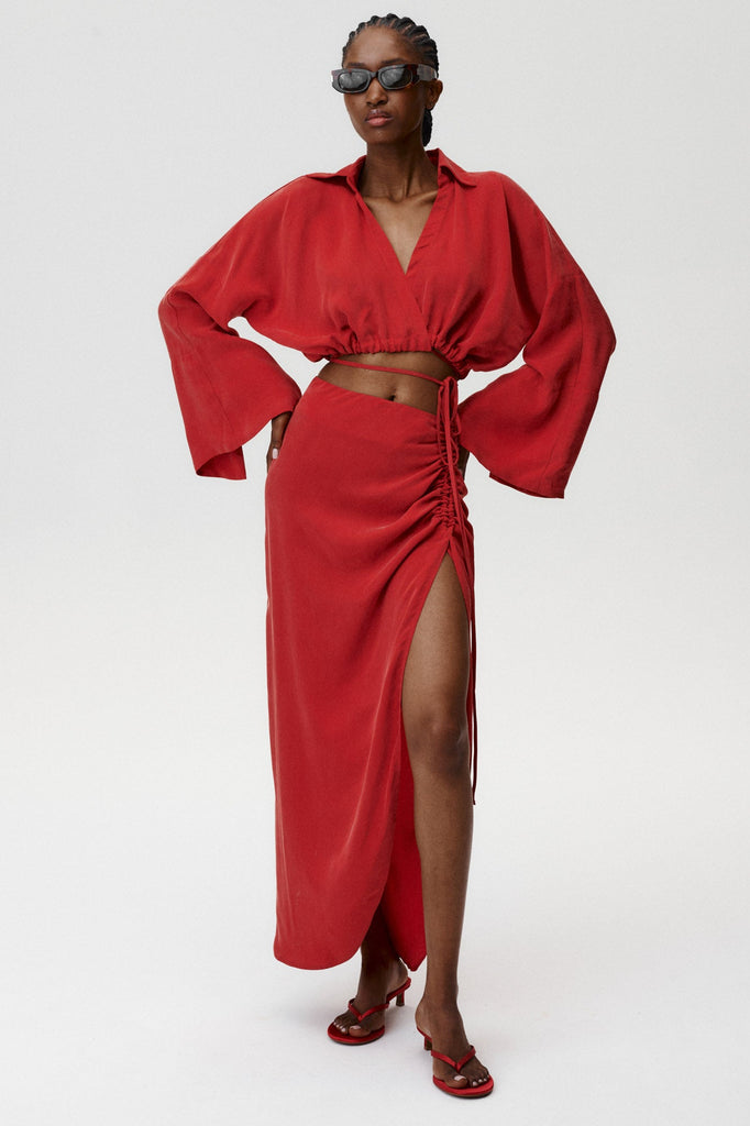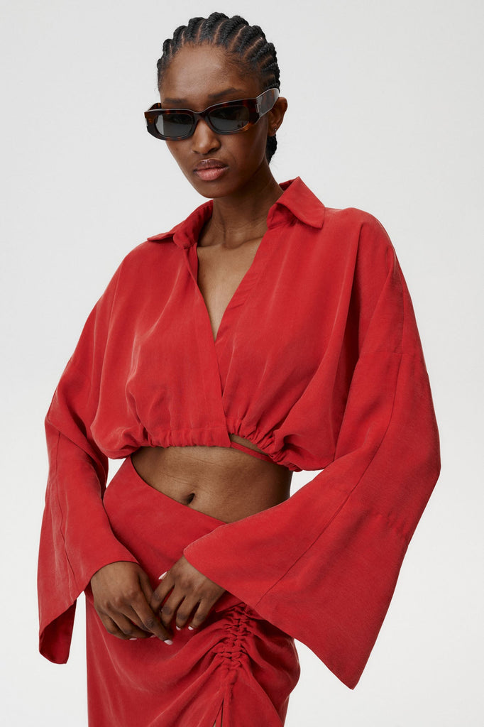Mamma Mia, how can we resist it? This wonderfully summery and airy shorter cut shirt will beautifully accentuate any silhouette and will look fabulous with both Rhea Skirt and any trousers.