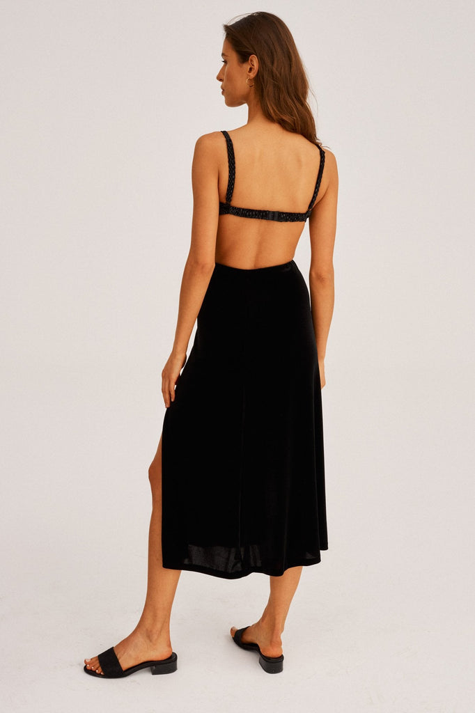A classic of the classics, with a sensual slit. Entirely made of our noble velvet in classic black. It perfectly adapts to the movement of the body, the perfect midi length, making it a skirt for breezy summer days or transitional evenings. Try adding knee-length boots for a winter night look, favorite lunch sandals, or a heel for drinks at dinner!