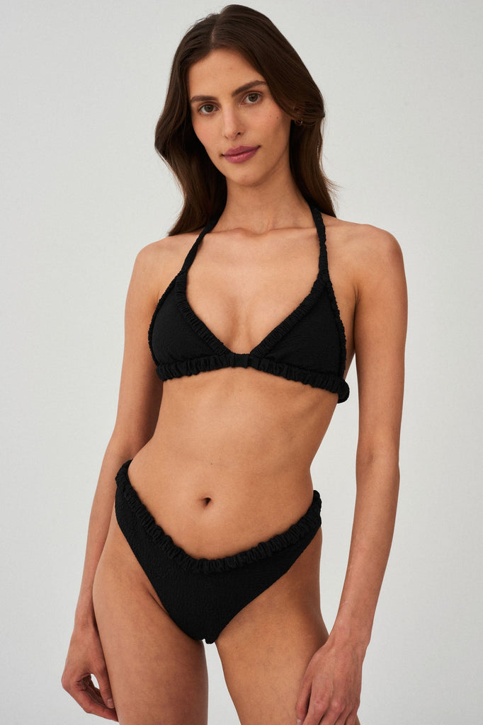 If you're looking for a classic tie-neck bikini top that has charming details as well, Self Portrait is the perfect choice. The decorative crinkled elastics provide support and optically enlarge the bust. This swimsuit is for the classic girls who like to break it up a little with an eye-catching detail and still look totally nonchalant.