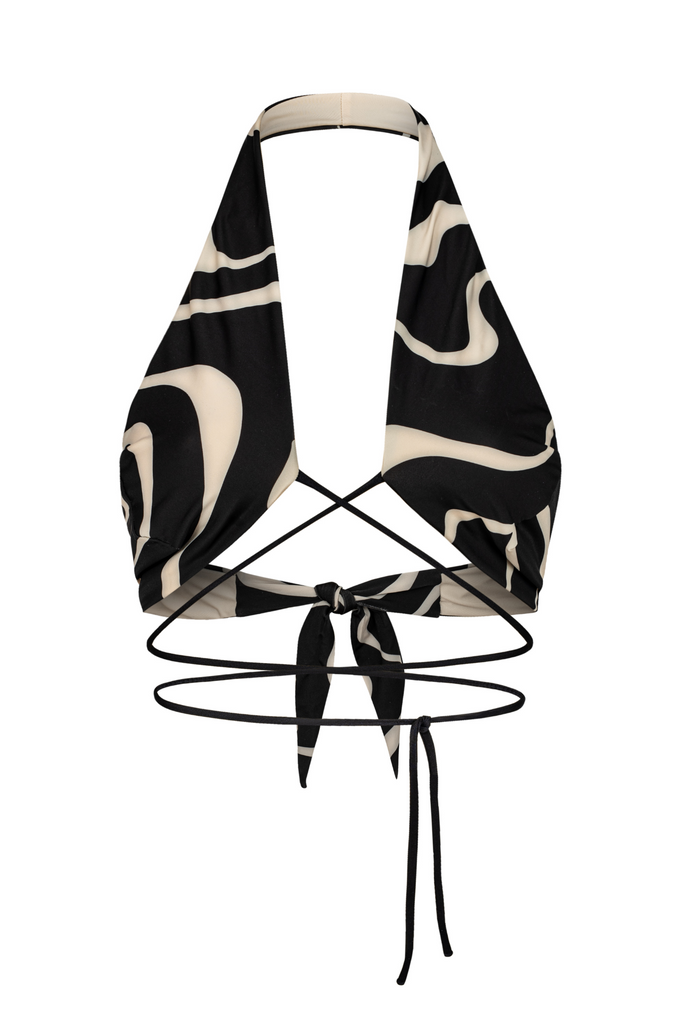 The Lotus Bikini Top in Tide print was made for sun-drenched days and laid-back lounging. Its halter neckline and wraparound tie make it as flattering as it is adjustable, so you can wear it your way. The wavy Tide pattern adds a bold touch that feels straight out of a summer postcard.