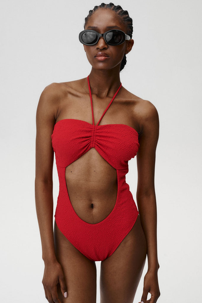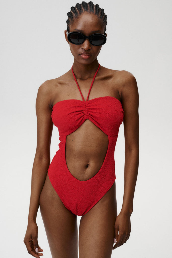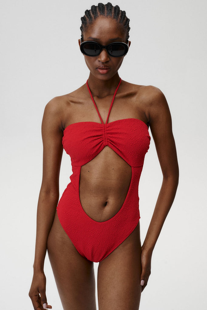 Serene Swimsuit is the perfect one-piece for those who want to shine with confidence on the sunniest of days. Its statement cutout and gathered bust detail accentuate your figure, while the soft, textured fabric feels luxurious against the skin. For those who adore a minimalist yet bold look.