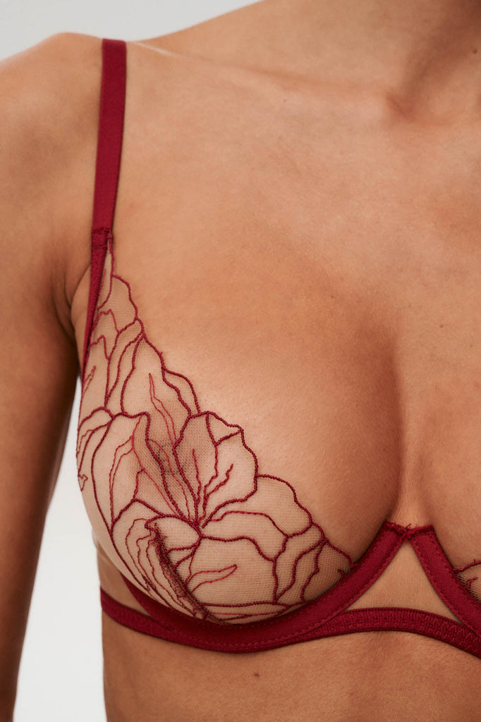 A delicate blend of femininity and allure, the Adore Bra in Burgundy stands out with its intricate embroidery and elegant design. This underwired bra offers the perfect combination of support and charm, whether youβre layering it under a crisp white shirt or styling it solo for a touch of effortless confidence. Burgundy is our color of the season - sensual, feminine, and effortlessly elegant.β¨β¨