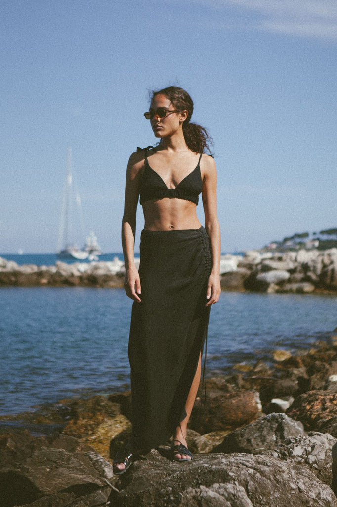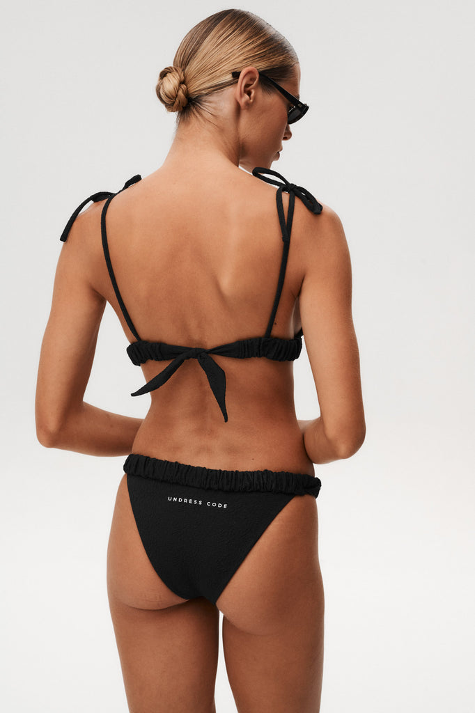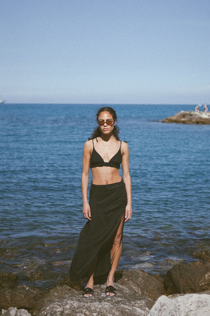 If you dream of sun-kissed skin, Before Sunrise is a perfect choice. The lacing on the shoulders and back will give you an even tan, a soft cup - comfort, and a crinkled rubber - support. The perfect top for shorts when you need to run to a small Italian store for fresh strawberries.