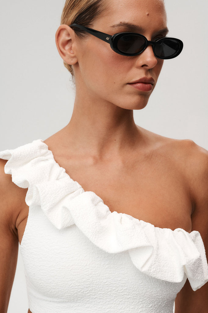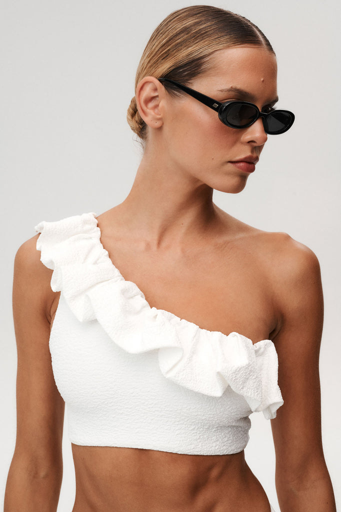 This bikini will make you feel like Botticelli's muse. Beautiful, asymmetrical bikini top with a decorative ruffle at the neckline will be perfect both for the beach and for summer looks with white high-waisted trousers or jeans. The name of this top is not coincidental - get out of the water wearing it and look around - all eyes will be on you, Venus!