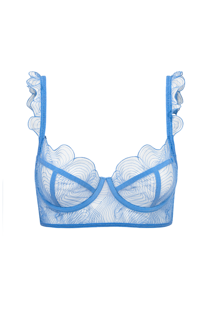 Romantic and captivating, the Bliss Bra combines delicate embroidery with a modern design to create a truly stunning piece. The soft violet blue tones and intricate wave-like details highlight femininity, while the structured underwire and extended cut provide comfort and support. Perfect for elevating your lingerie collection with elegance and charm.