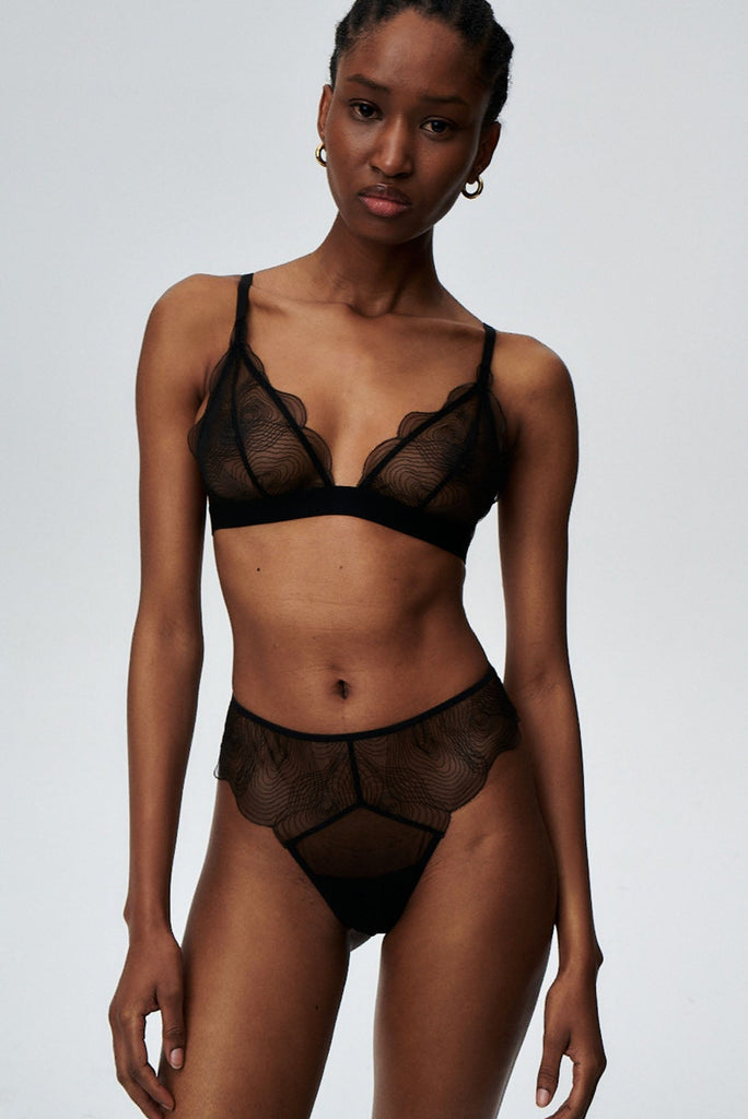 The most romantic lingerie of the season. Beautifully ruffled shapes and delicate embroidery make the Bliss thong a pure delight for the eyes and body.