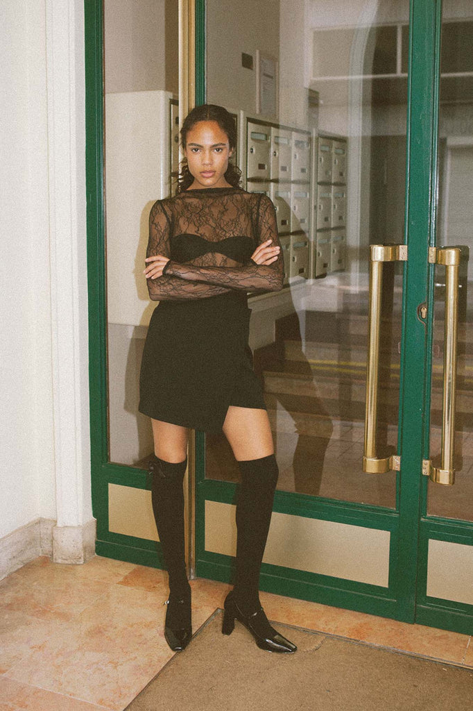 Electrifying at first sight, this bodysuit is made with delicate lace, a slightly flowing neckline and a minimalist detailing. Perfect for any occasion and season, we'd happily wear it every day!