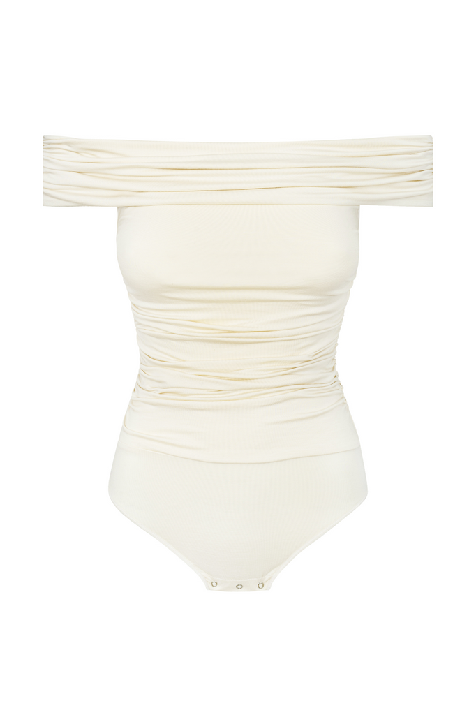 The Buttercup Bodysuit is a celebration of effortless femininity and timeless elegance. Designed with a soft, draped off-the-shoulder neckline, it gracefully highlights the collarbones while the gathered fabric delicately sculpts the waist. The lightweight, figure-hugging material ensures both comfort and sophistication, making it the perfect piece for any occasion.