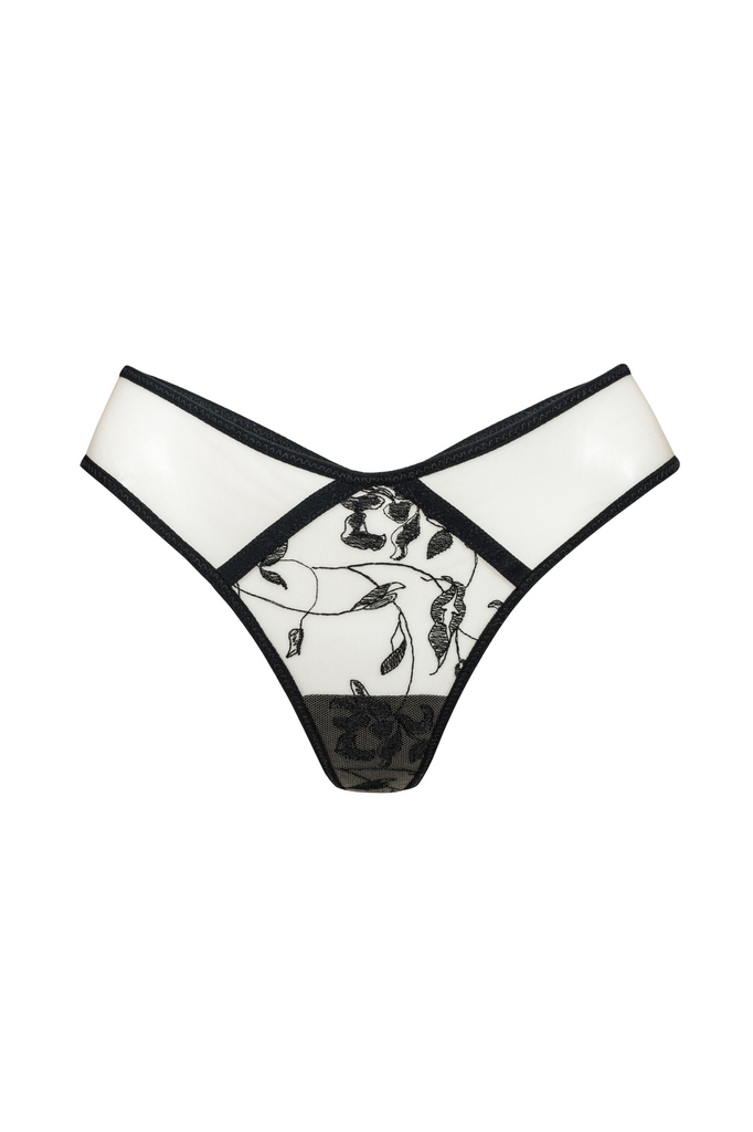 An irresistible combination of sheer elegance and seductive details, the Deja Vu Thong features bold floral embroidery on Italian mesh. The V-shaped cut adds a contemporary twist, while the lightweight and stretchy design ensures comfort without sacrificing allure.