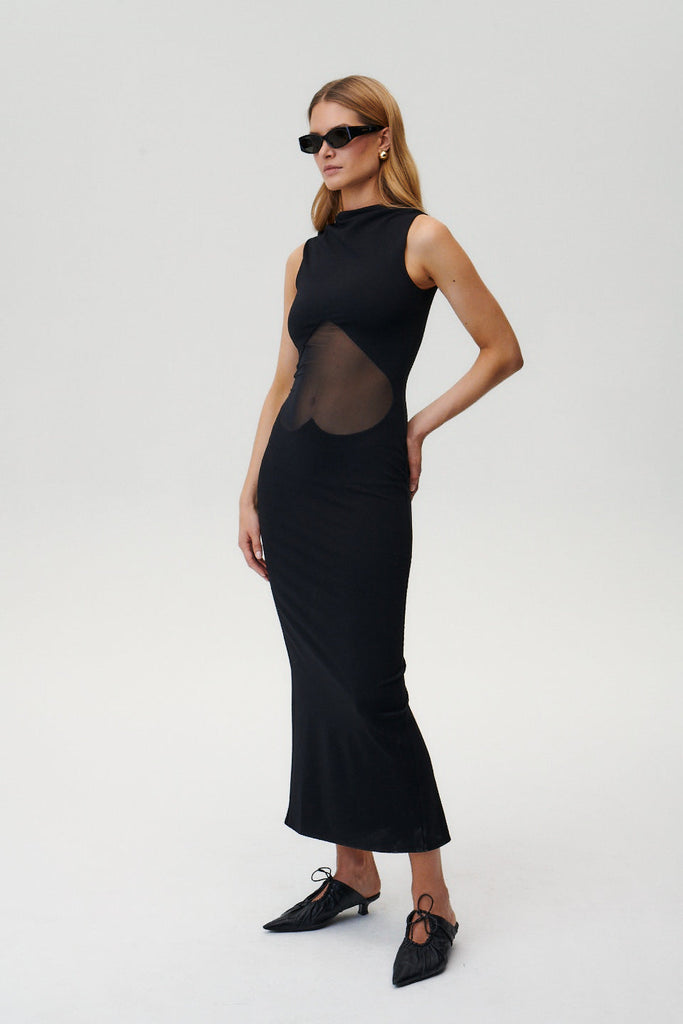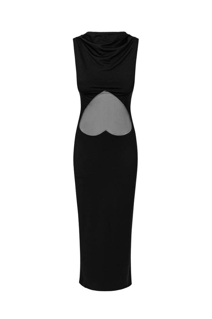 Step into the spotlight with our stunning sleeveless maxi dress, featuring a unique mesh heart at the center and a daring cut-out. The body-hugging fit enhances your curves, while the stretchy fabric ensures all-day comfort. Perfect for a night out or a special event, this dress is for the fearless and fashion-forward UC Girls.