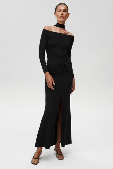 The ultimate, refined elegance with a subtly rounded, asymmetric neckline that beautifully exposes the shoulder and turtleneck for the 90's glamorous look. Just put it on and you'll find yourself on a theatre date, or even on some midnight drinks. It's rich enough to feel special, versatile enough to wear on repeat. Layer it under blazers, style it solo, dress it up or keep it casual. This shade just works – sensual, refined, and always elevated.