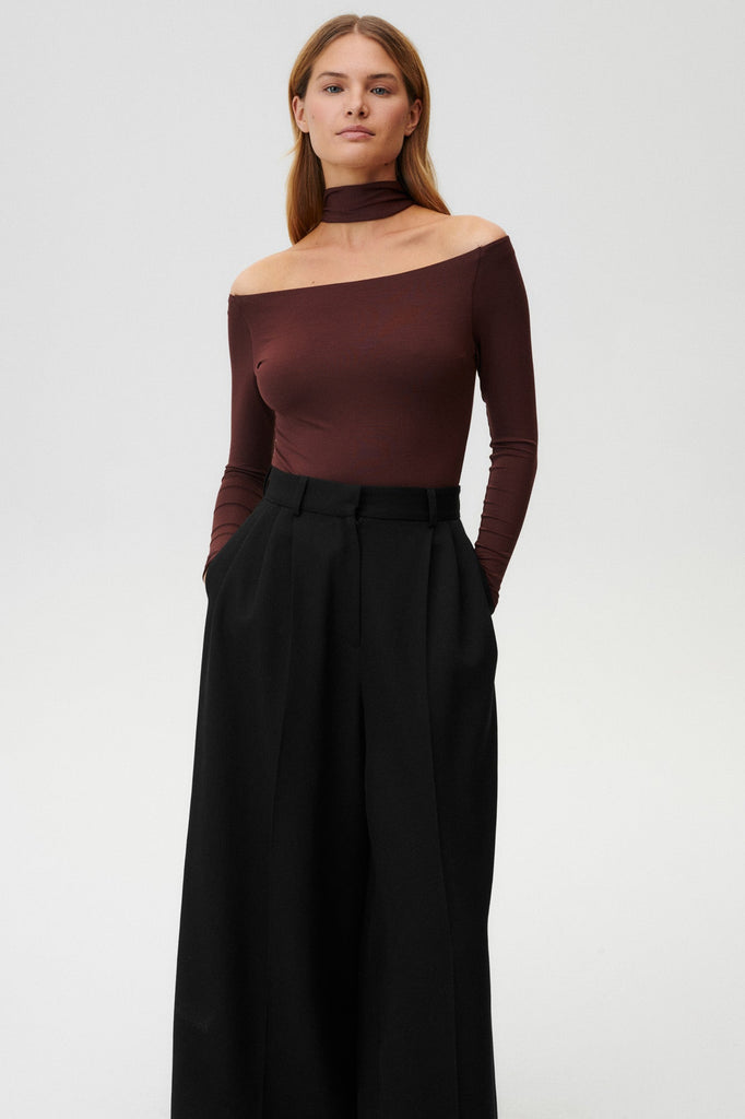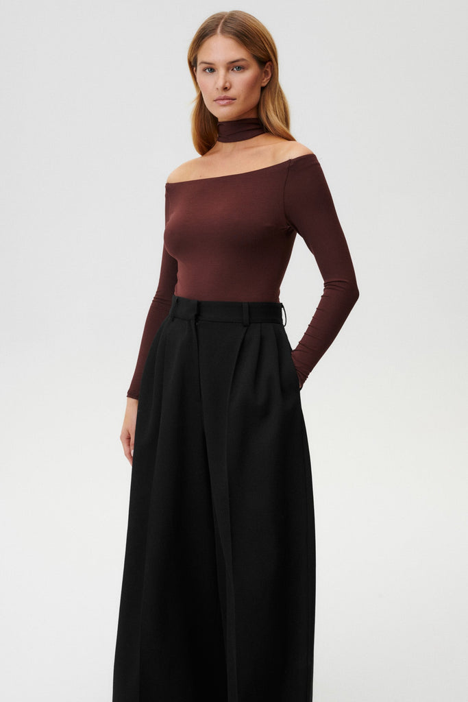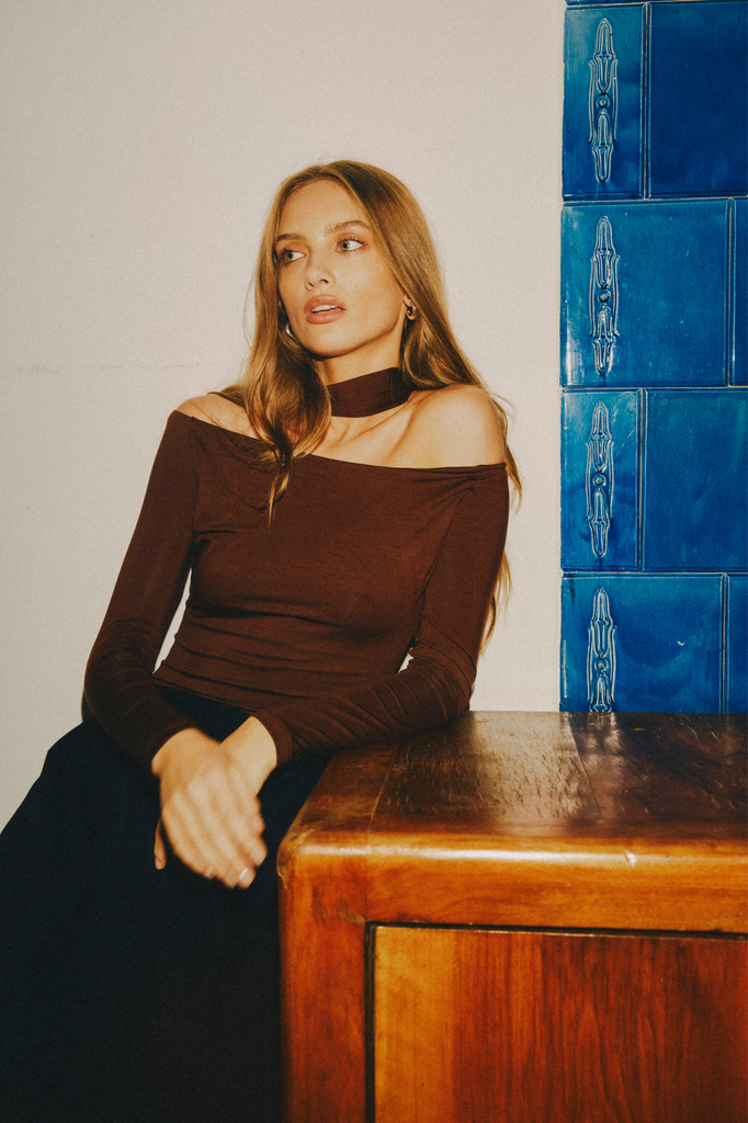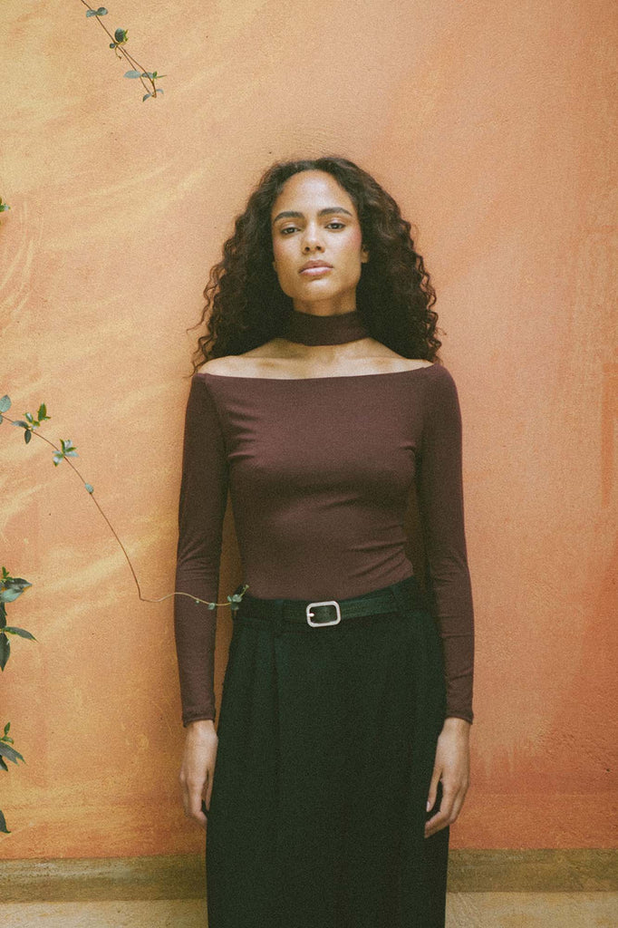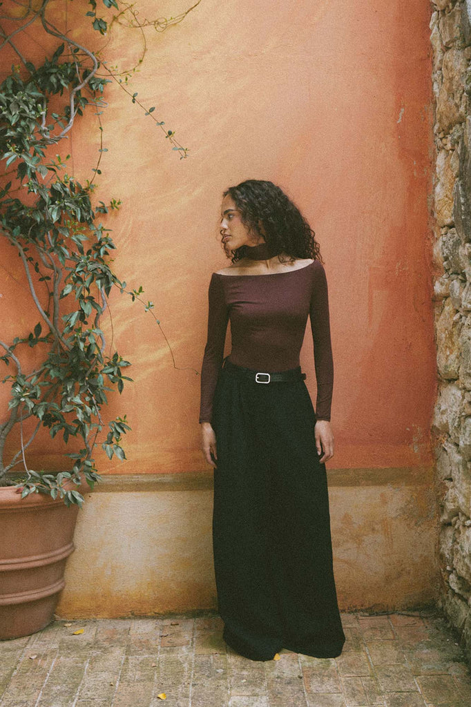 The ultimate, refined elegance with a subtly rounded, asymmetric neckline that beautifully exposes the shoulder and turtleneck for the 90's glamorous look. Just put it on and you'll find yourself on a theatre date, or even on some midnight drinks. It's rich enough to feel special, versatile enough to wear on repeat. Layer it under blazers, style it solo, dress it up or keep it casual. This shade just works – sensual, refined, and always elevated.