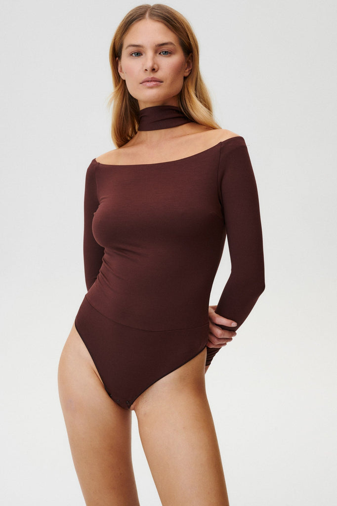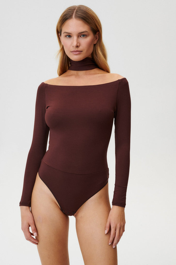 - Brown bodysuit made of Lyocell.