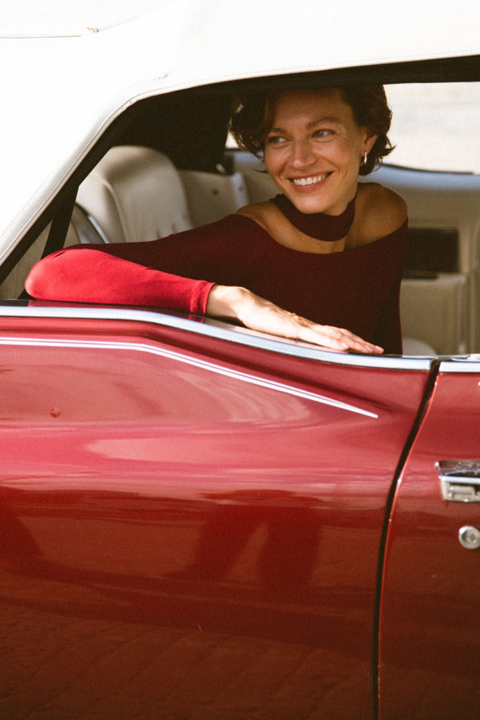 The ultimate, refined elegance with a subtly rounded, asymmetric neckline that beautifully exposes the shoulder and turtleneck for the 90's glamorous look. Just put it on and you'll find yourself on a theatre date, or even on some midnight drinks. And this shade - burgundy - just hits different... It's rich enough to feel special, versatile enough to wear on repeat. Layer it under blazers, style it solo, dress it up or keep it casual. This shade just works – sensual, refined, and always elevated.