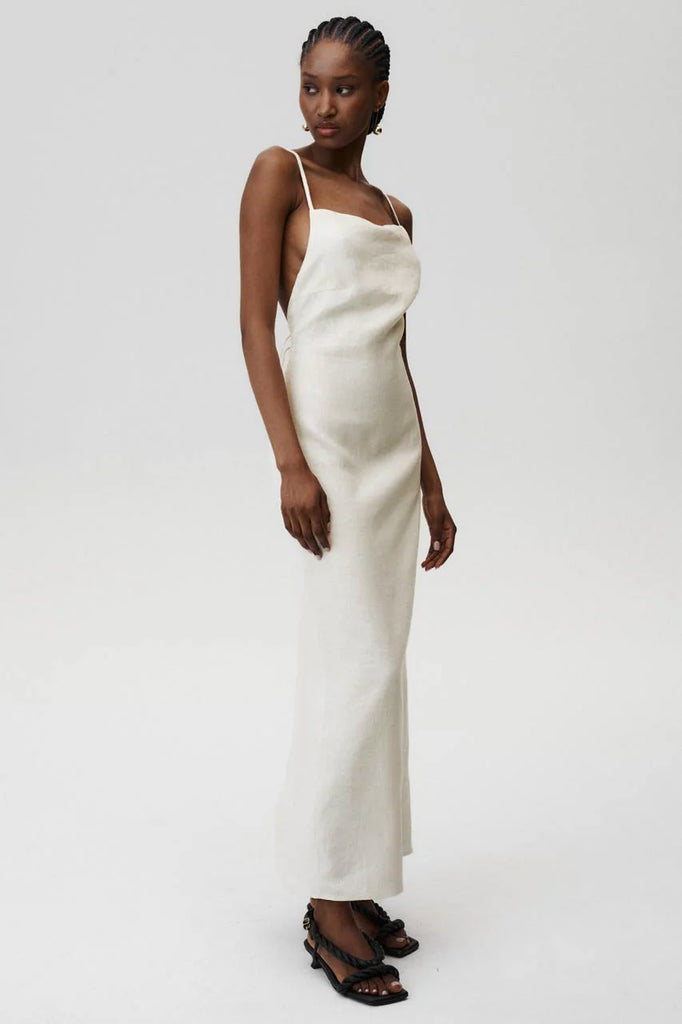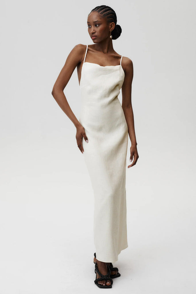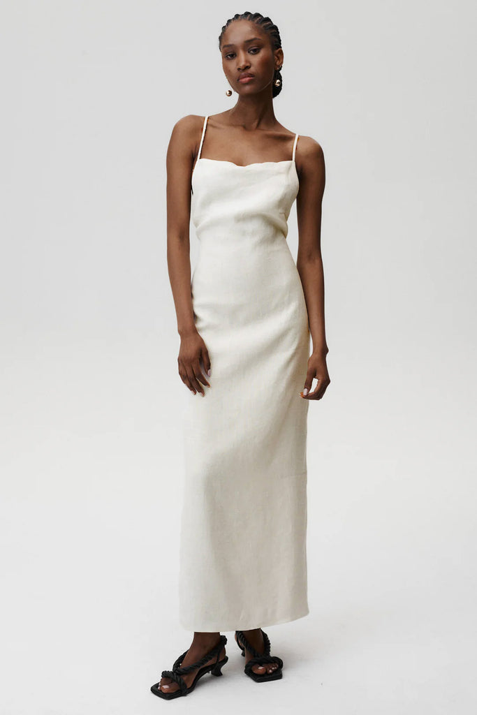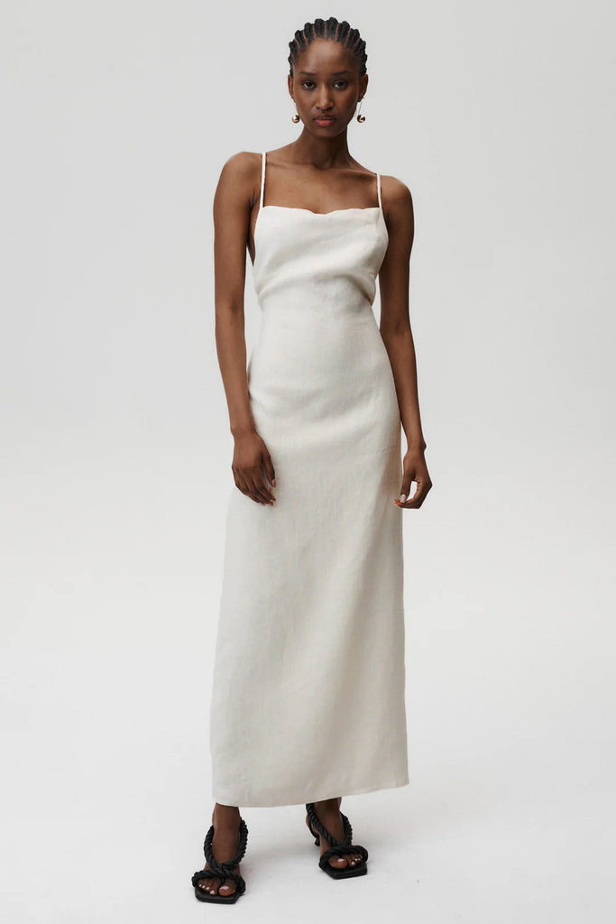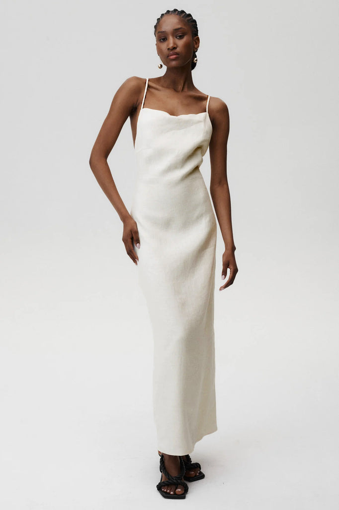 Embrace effortless elegance with the Havana Dress. This piece captures the essence of timeless beauty while maintaining a sleek and refined silhouette. The delicate spaghetti straps and fluid maxi length create a graceful, elongated look, perfect for both elevated everyday wear and special occasions. Crafted from linen, it ensures comfort without compromising on style.