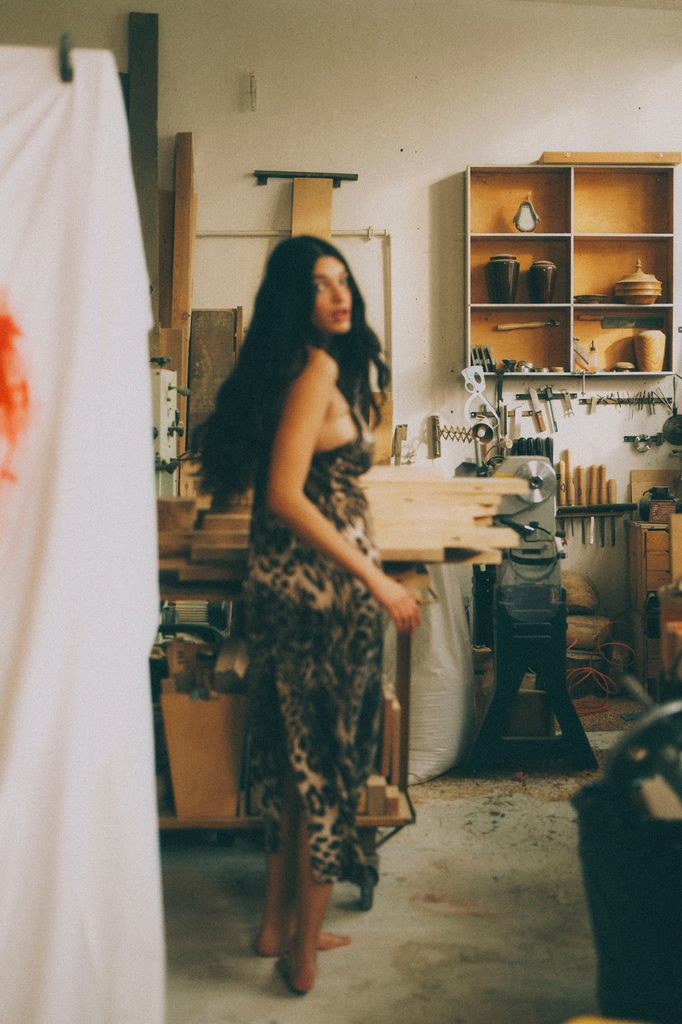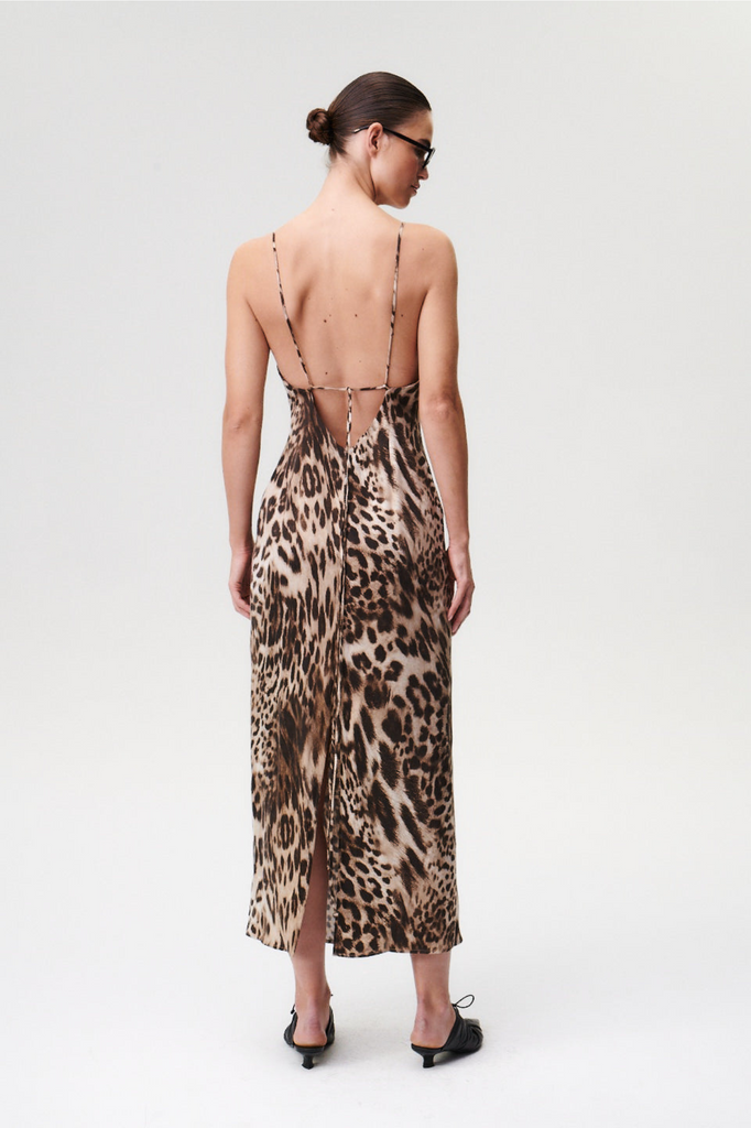 - Leopard-print slip dress.