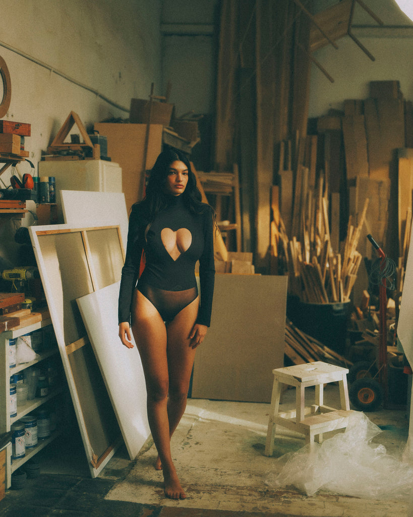 This long-sleeve black bodysuit features a high neckline and a sheer heart-shaped cutout, striking the perfect balance between playful and sophisticated. Its sleek fit and timeless design make it a versatile piece. A great choice for Valentine’s Day or any day you want to wear your heart on display.
