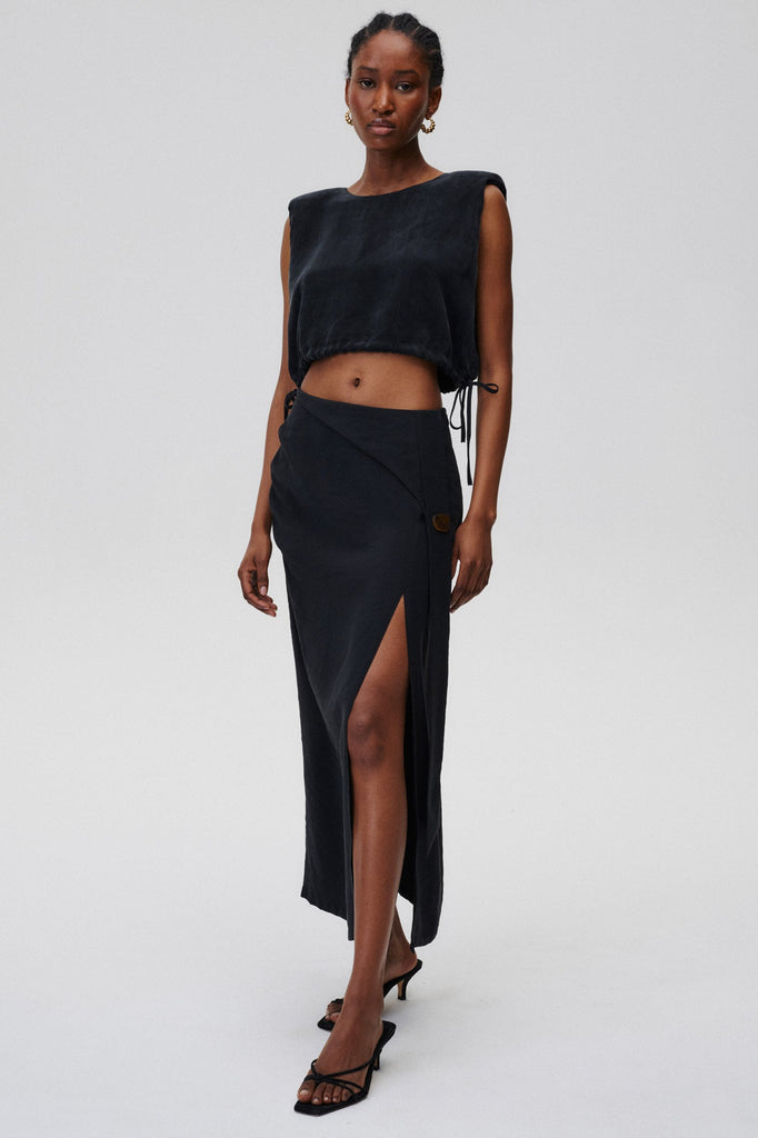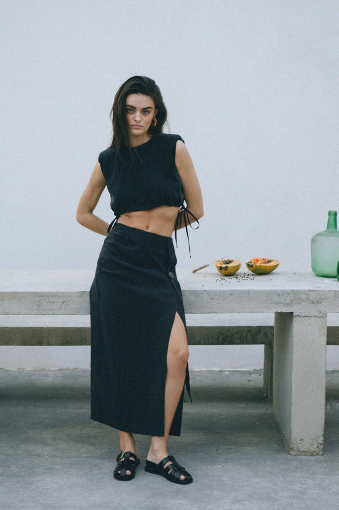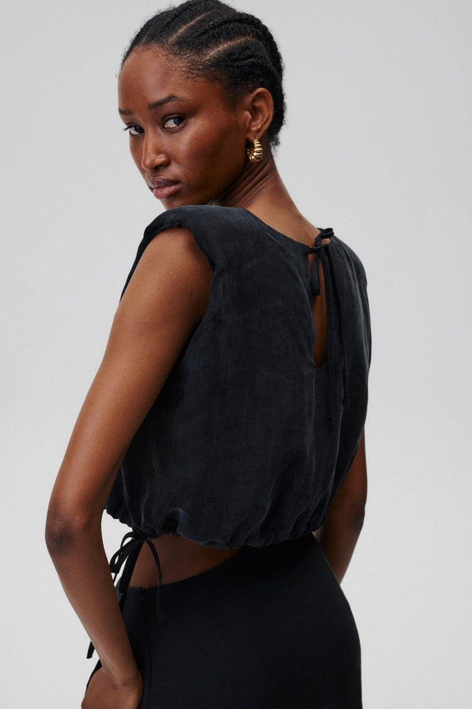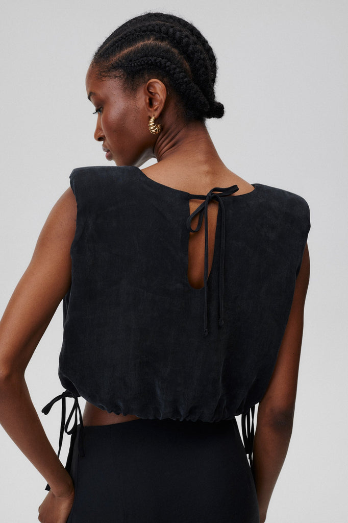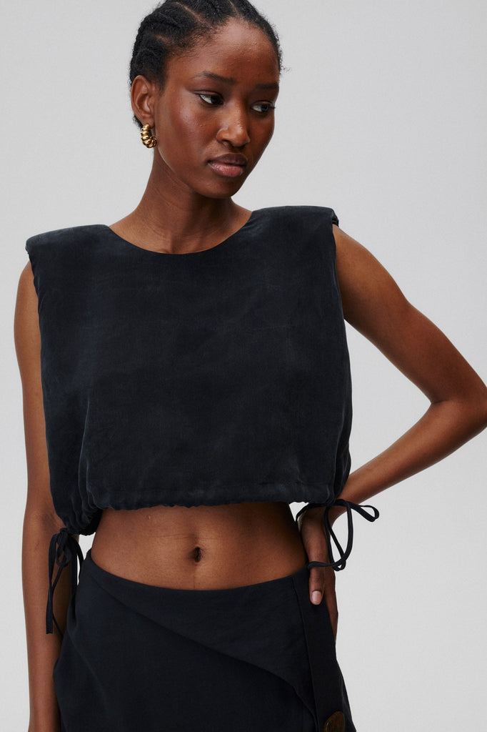 The perfect crop top. Made from breathable fabric, building the silhouette with cushioned shoulders and in a deep graphite colour. For cool UC Girls who will make it the base for totally different looks.