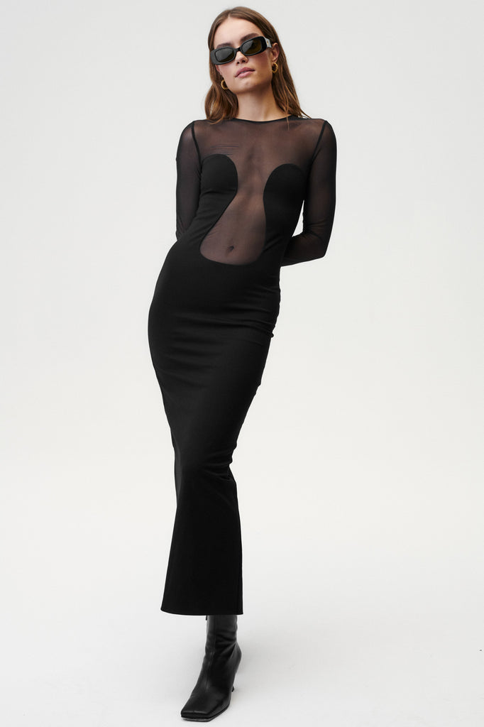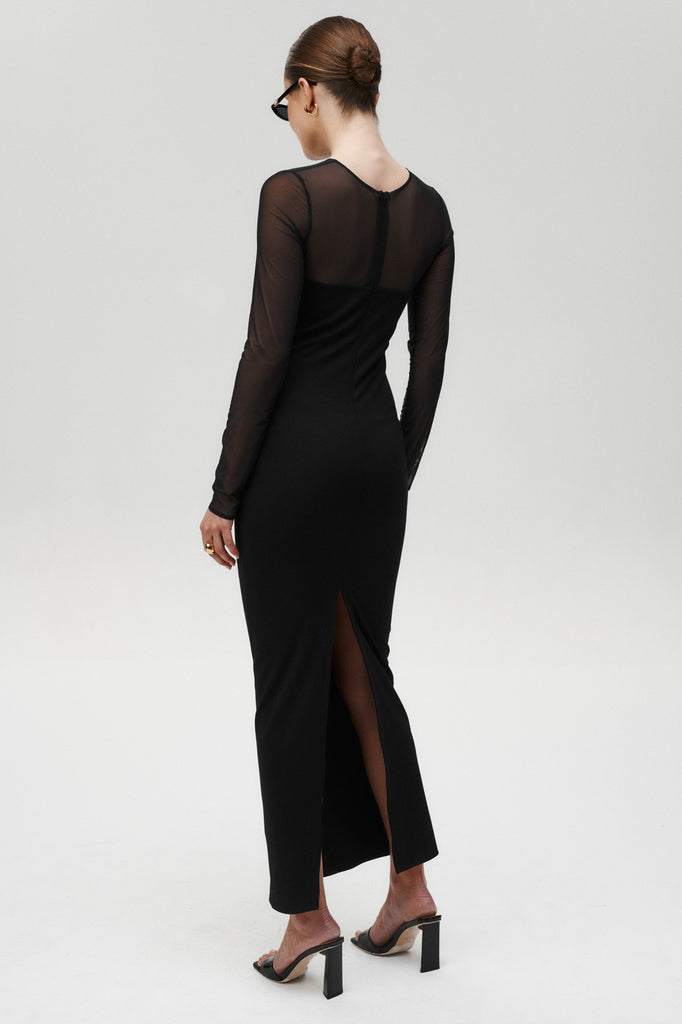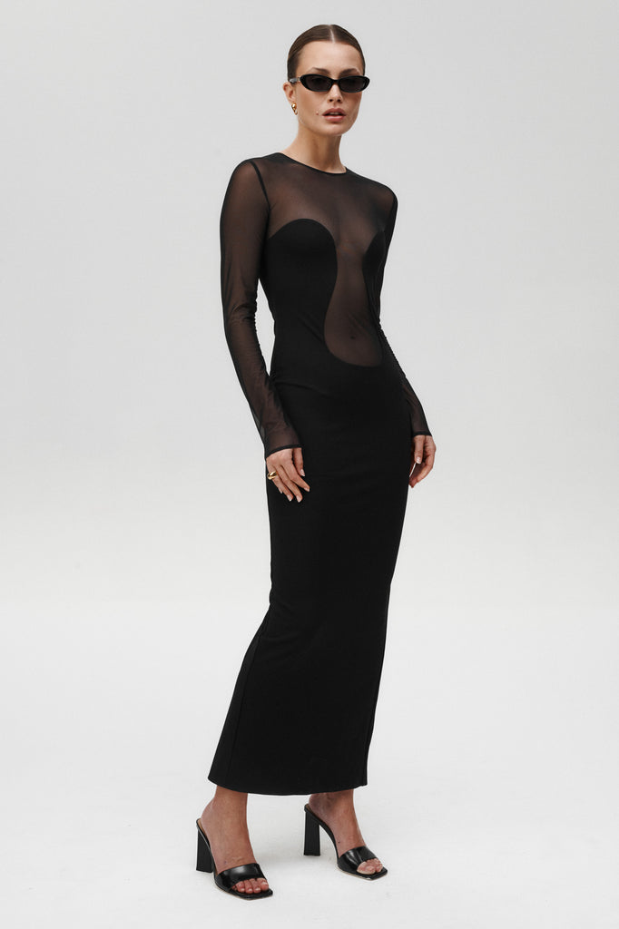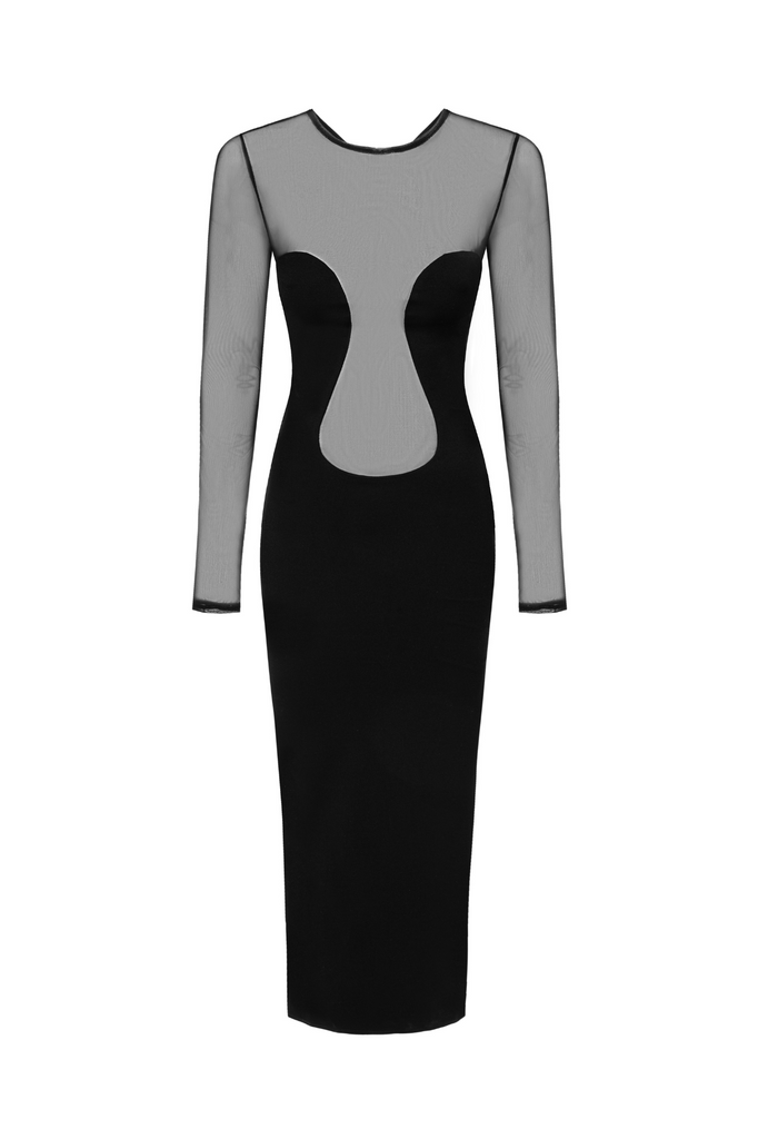Elevate your evening style with our fabulous maxi dress, combining the softness of viscose blend with the allure of mesh for a truly unique effect. The body-hugging cut flatters your figure beautifully, while the intricate shape crafted from the fabric fusion adds depth and interest. With a captivating neckline, this dress is a must-have for all the bold UC Girls.